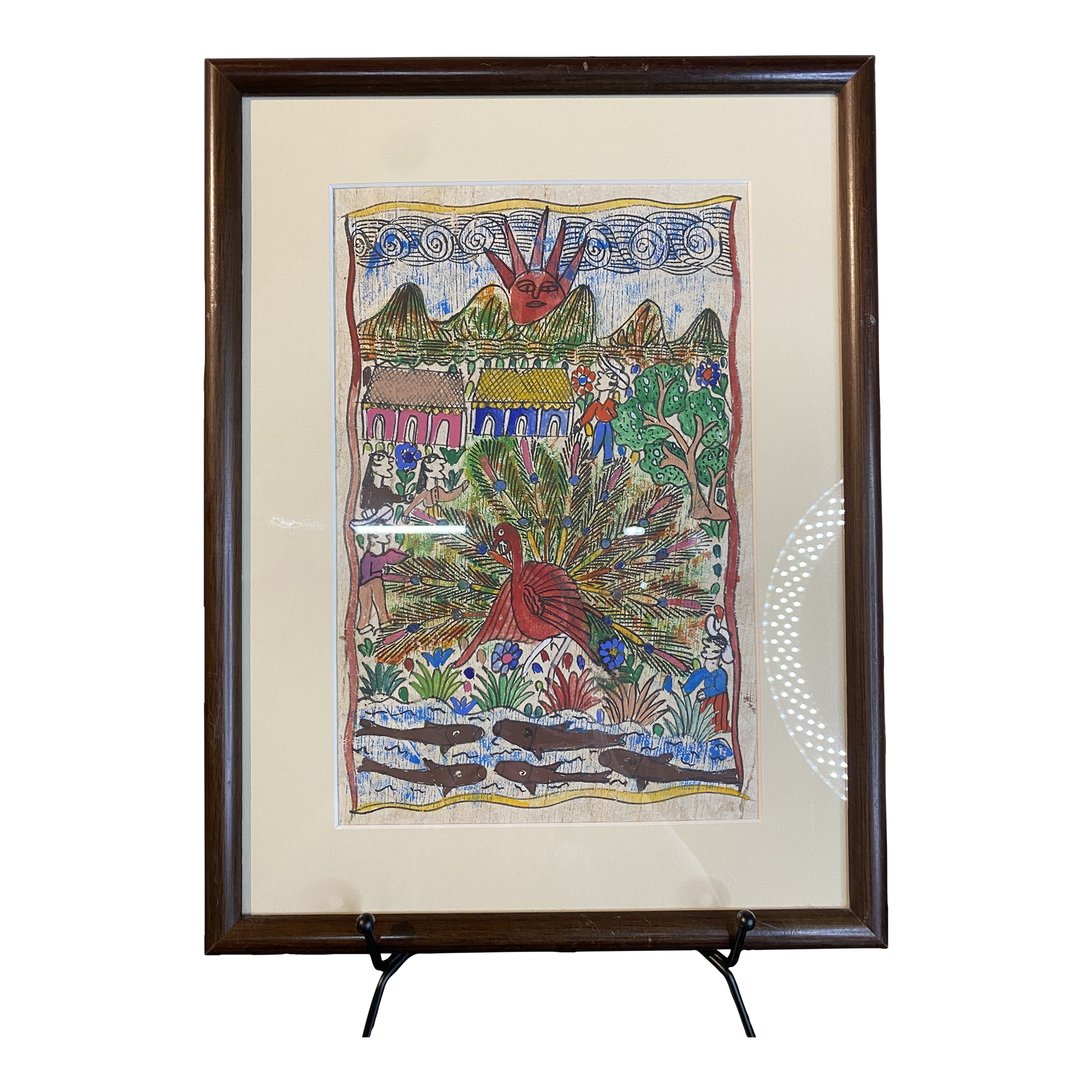 Mexican Folk Art Painting Amate Bark Paper 23 5 X30 5 Gouache On Bark